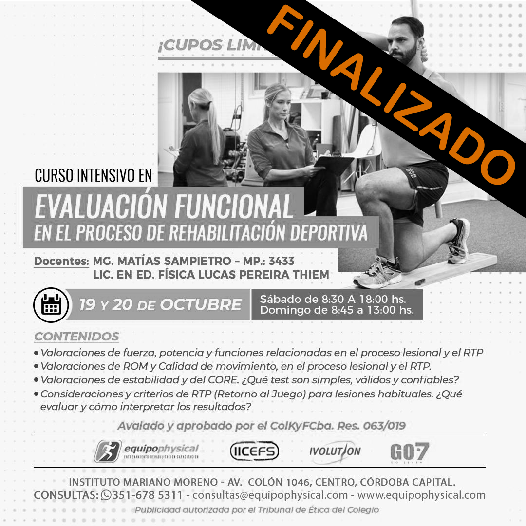 En rehabilitación deportiva es importante considerar todos los aspectos relacionados tanto con la lesión, como con los factores de riesgo asociados que presenta el deportista. Por este motivo, las valoraciones tanto de proceso, como la toma de decisión para el retorno al deporte son determinantes. El proceso de evaluación funcional permite al kinesiólogo entender el estado real del paciente en relación al proceso de su lesión y las funciones asociadas, así como establecer criterios que permitan poner en contexto el riesgo de su retorno a la práctica deportiva.